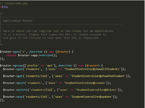 Now the time has come to add routes into your web application. Open web.php and add following code